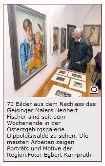 Sie knüpft Bänder zur Vergangenheit. Im Wohn- und Atelierhaus auf der Lange Straße 11 in Geising saß sie dem Künstler früher häufig Modell. Als er 1961 von einer BRD-Reise nicht zurückkehrte, folgte sie ihm in die neue süddeutsche Wahlheimat. Doch 1996 kehrte sie zurück nach Geising. Liebevoll hat sie das verwaiste Fischer-Haus auf der Lange Straße, an dem noch die schmiedeeiserne Palette hing, neu beseelt. Dort verwaltet sie auch den Nachlass ihres Mannes.